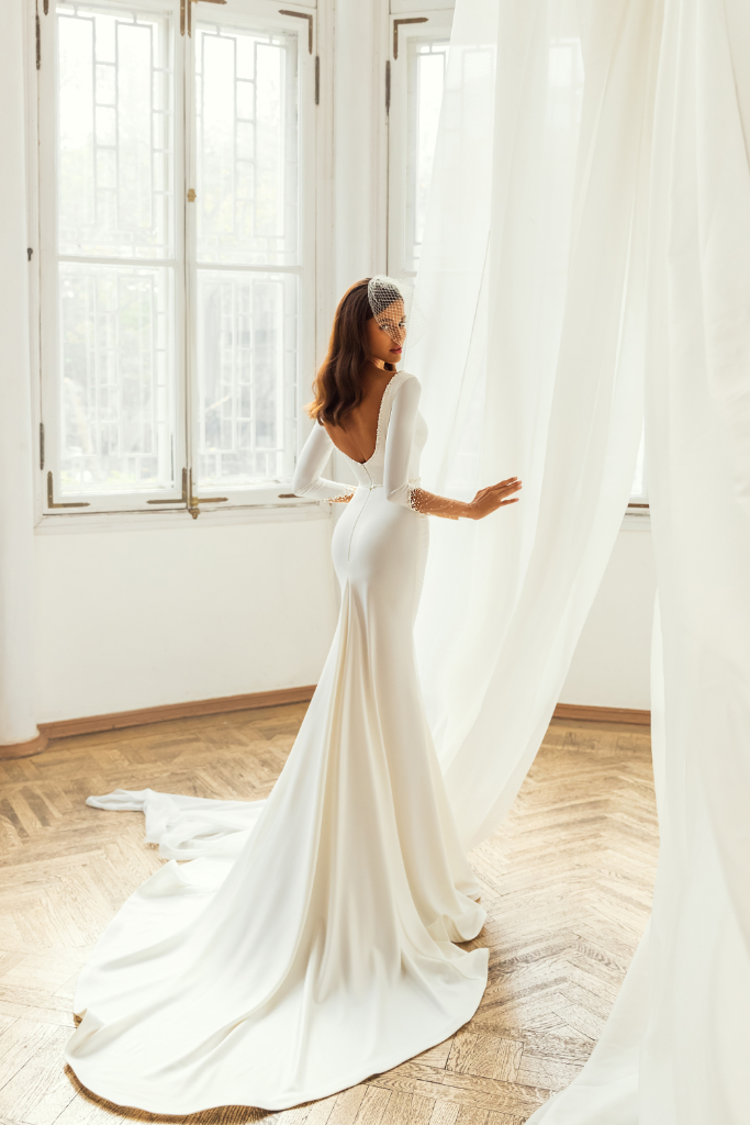 Mermaid trouwjurk met diepe v-hals en diepe rug